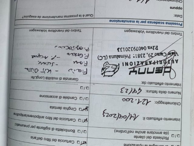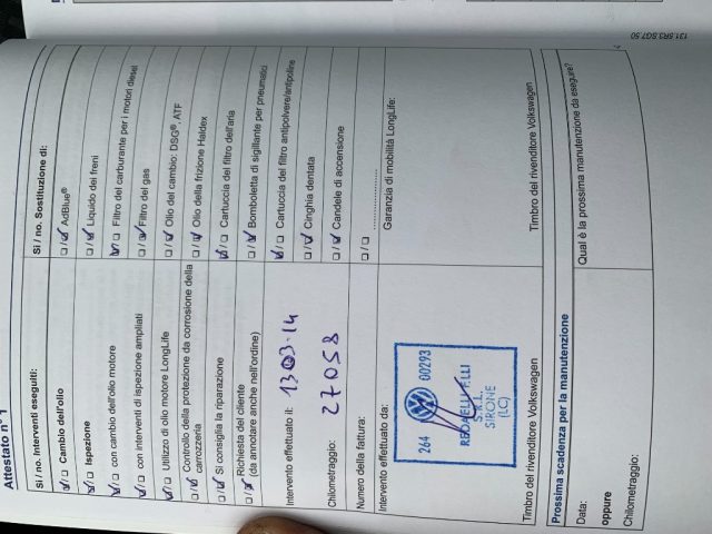 •Tagliando di manutenzione ordinaria (se necessario)